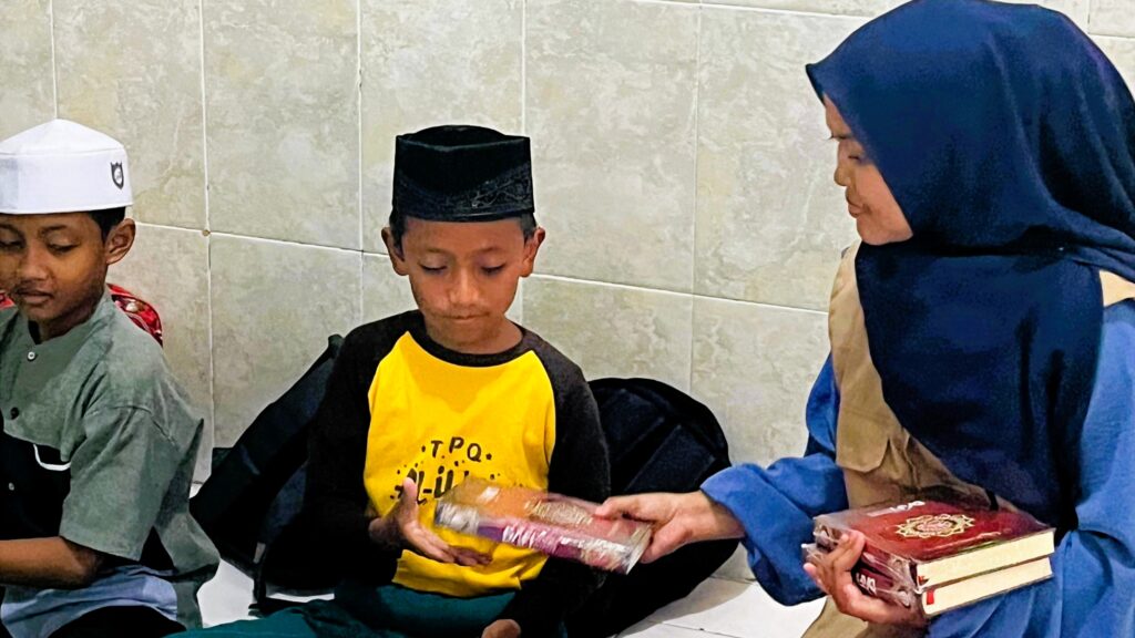 Santri TPQ Al Ikhlas menerima mushaf al qur’an amanah donatur